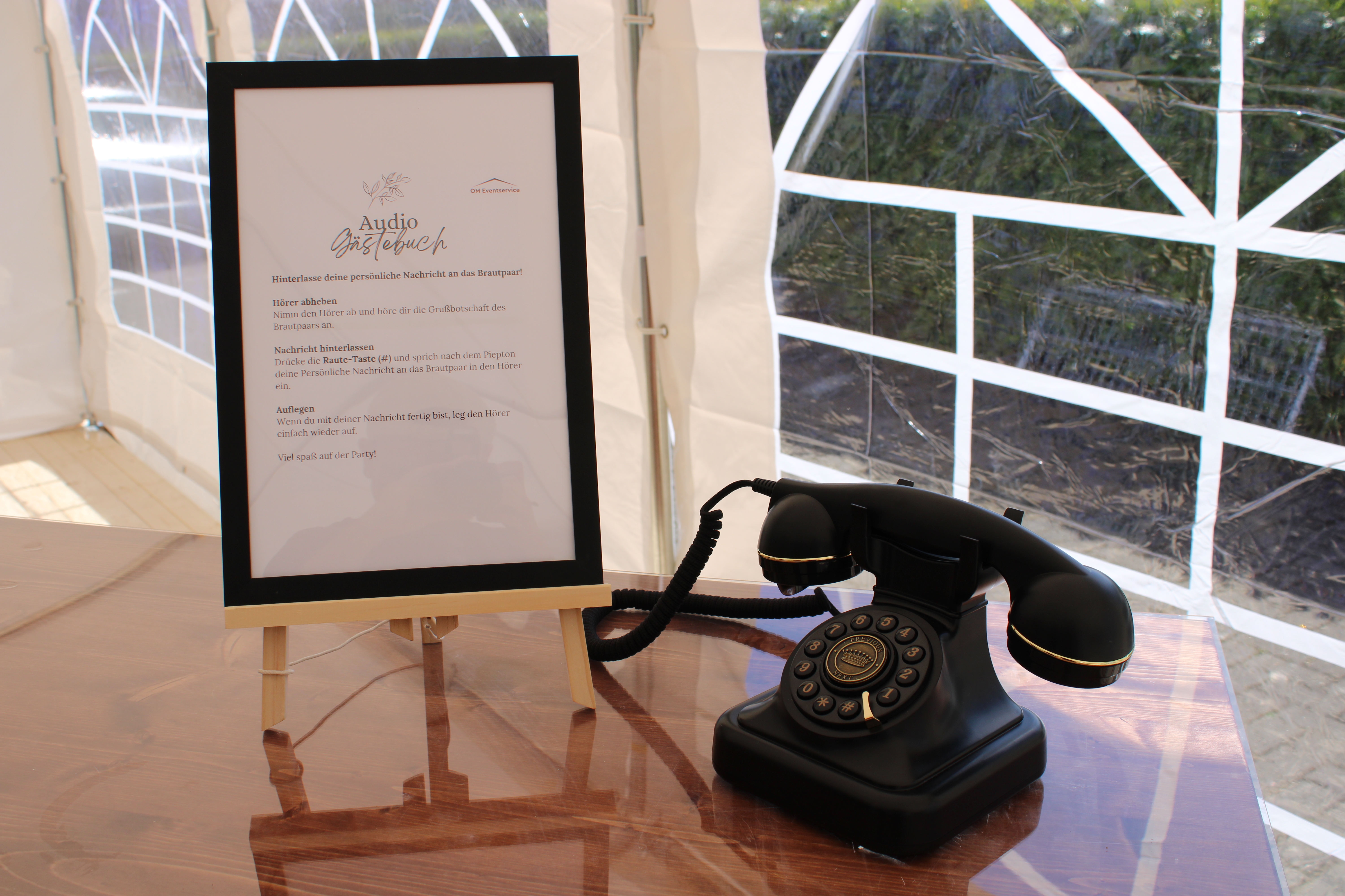 2. Auf Eurer Feier können die Gäste ganz einfach Ihre Grußbotschaft auf das Telefon sprechen.